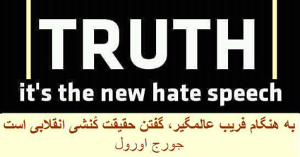 به هنگام فریب عالمگیر، که به قول «جورج اورل» گفتن حقیقت کُنشی انقلابی است، خشم ستمدیدگان و بیان به ظاهر تنفرآمیز کسانیکه در پی آواز حقیقت دوانند قابل فهم است، اما همیشه بیان تنفرآمیز با آزادی و حقجویی همراه نیست و گاه به امتناع انصاف و واقع بینی میکشد.